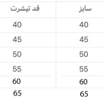 راهنمای اندازه تی شرت و پیراهن